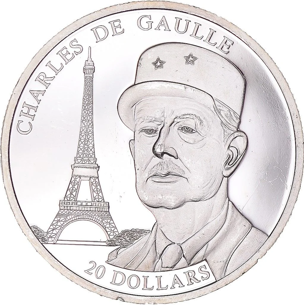 Charles de Gaulle's bust with the Eiffel Tower behind.