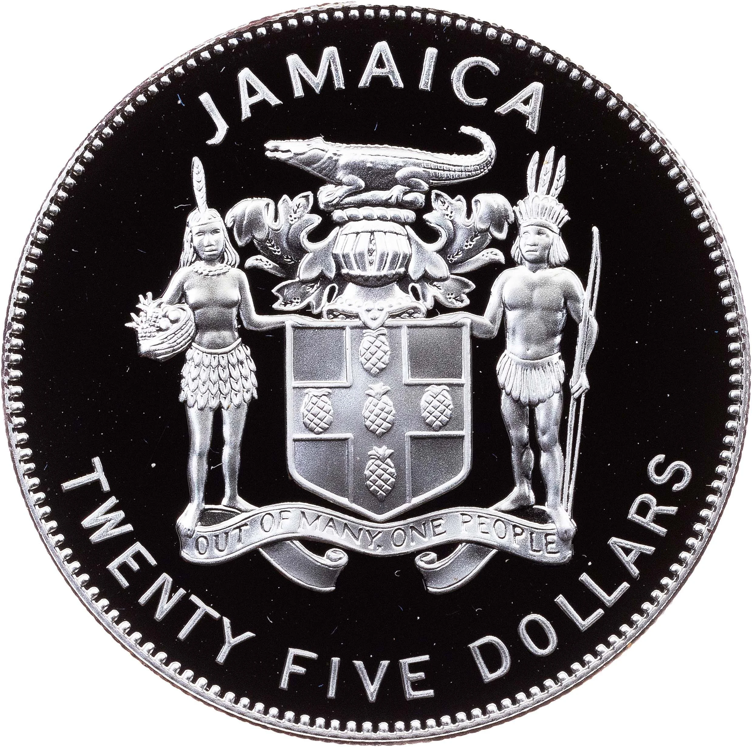 Jamaica coat of arms, denomination, year.