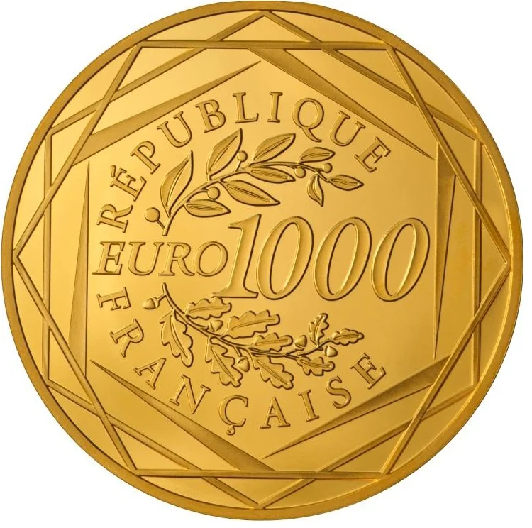 Laurel and oak branches frame the face value, surrounded by "RÉPUBLIQUE FRANÇAISE" and three hexagons.