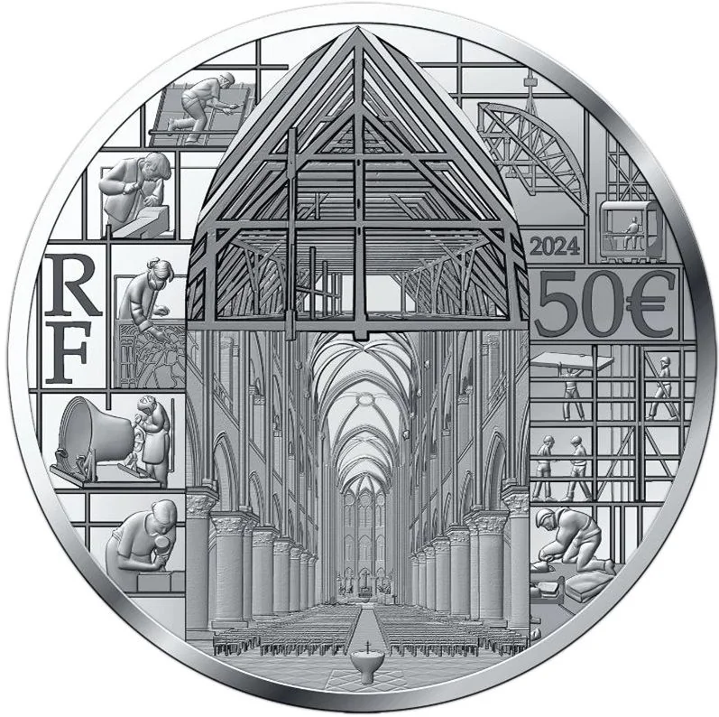 Inside the cathedral, the renovated choir reveals new liturgical furnishings. Above, Notre-Dame's framework is visible within the vaults, showing the complex interlocking trusses that support the roof.
