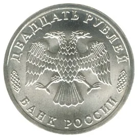 Bilibin's two-headed eagle design, with inscriptions along the rim: "ДВАДЦАТЬ РУБЛЕЙ" (TWENTY ROUBLES) above and "БАНК РОССИИ" (BANK OF RUSSIA) below, separated by an ornament.