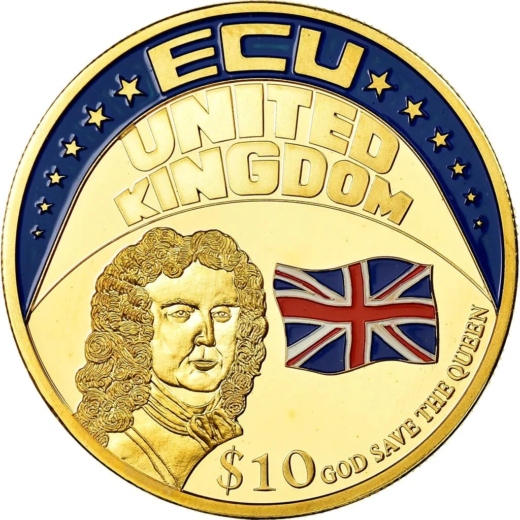 Twelve stars, UK flag, and denomination.