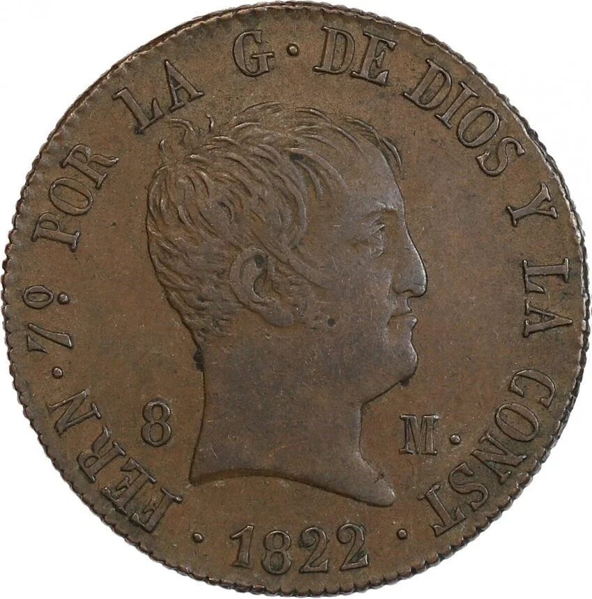 In 1822, Spain was embroiled in the political and military chaos of the Trienio Liberal (1820–1823), a period when liberal revolutionaries had forced King Ferdinand VII to accept a constitutional monarchy. The nation was deeply divided, with a civil war raging between the liberal government in Madrid and royalist absolutist rebels, while a French invasion force (the "Hundred Thousand Sons of Saint Louis") was preparing to cross the border to restore Ferdinand to absolute power. This profound instability shattered public finance and economic activity, creating a catastrophic environment for the currency.