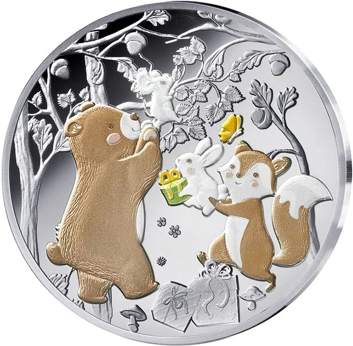 Forest animals exchange gifts.
