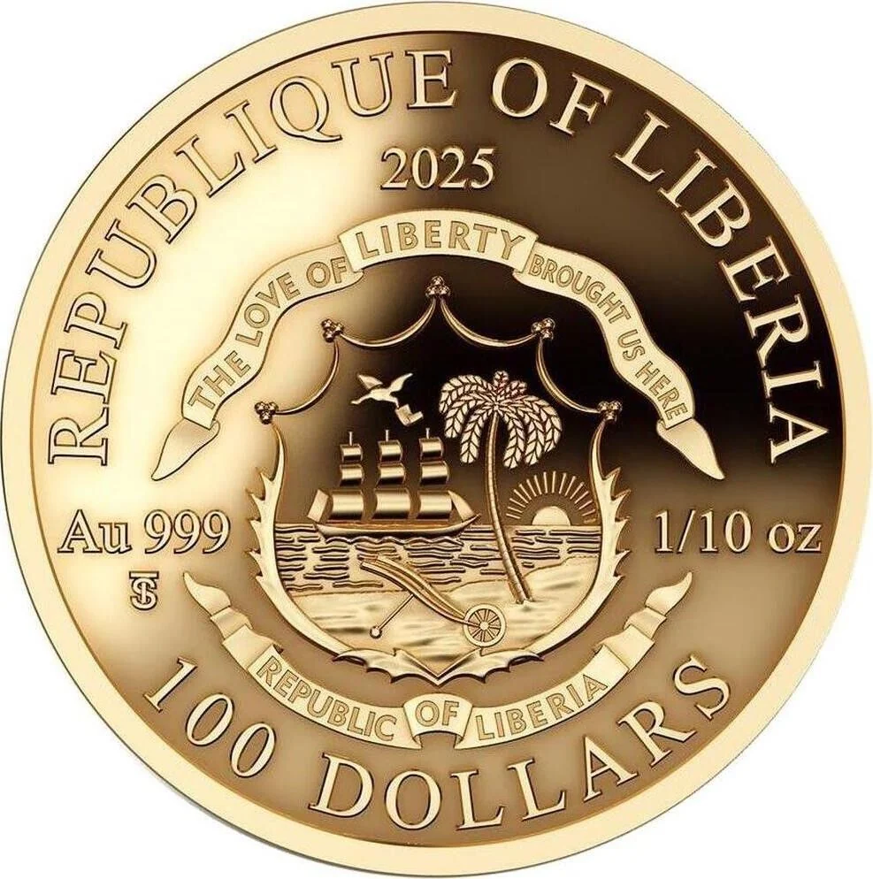 Description: Coat of arms divides purity and weight. Country name and date above, value below. Note: "Republique of Liberia" is an error for "Republic of Liberia."