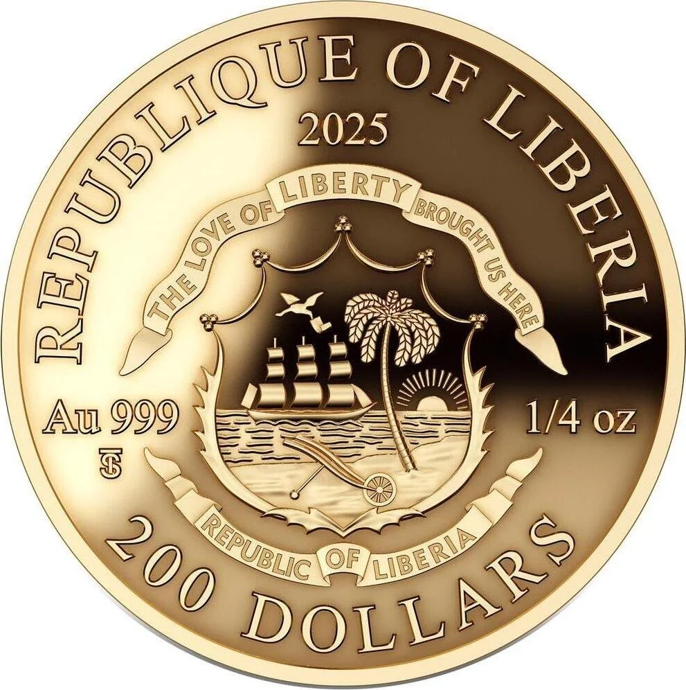 Description: Coat of arms divides purity and weight. Country name and date above, value below. Note: "Republique of Liberia" is an error for "Republic of Liberia."