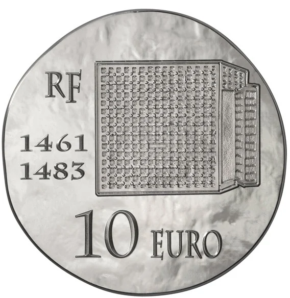 A "fillette" cage from the reign of Louis XI. The left side bears his reign dates, "RF", and "10 EURO".