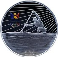 - Foreground: a stylized athlete rowing a canoe with the Moldovan Olympic Committee logo.