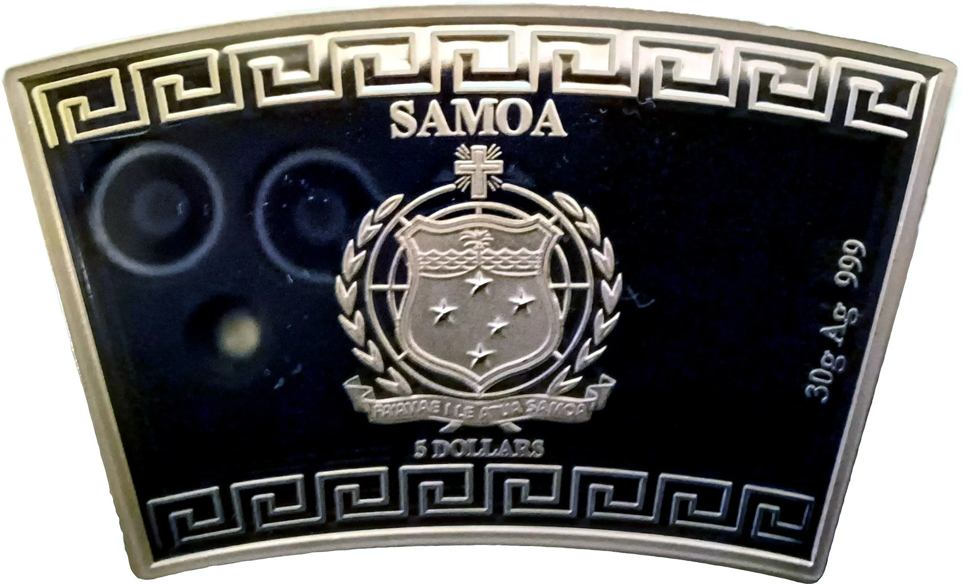 Coat of arms centered, country name above, weight and fineness at right, value below.