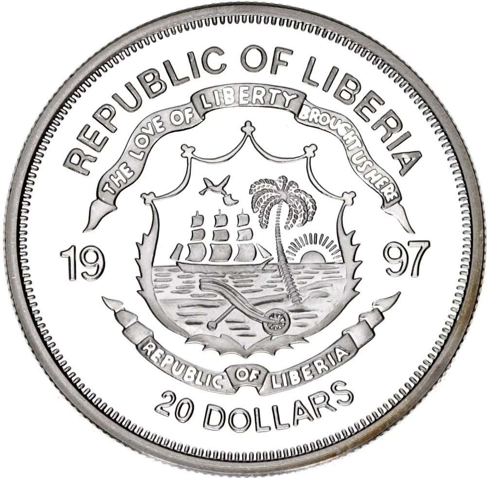 Coat of Arms of Liberia divides date, denomination beneath.
