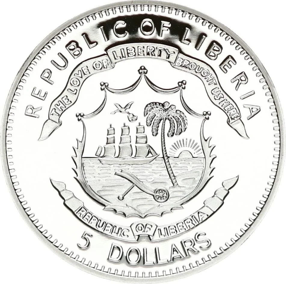 Liberian coat of arms with denomination below.