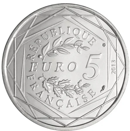 "EURO 5" flanked by laurel and oak branches, encircled by "RÉPUBLIQUE FRANÇAISE", the year, and three hexagons.