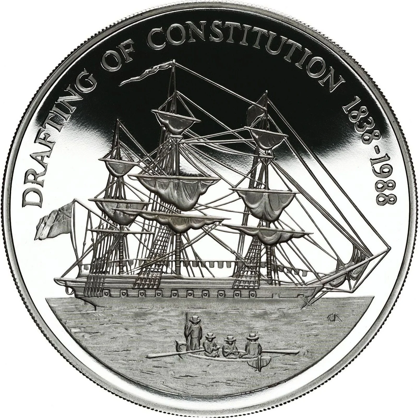 HMS "Fly," site of the 1838 constitution signing, with a rowing boat in front.