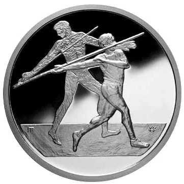 The design features the Athens 2004 emblem: a kotinos (olive wreath) encircling the Olympic rings, all enclosed within a ring of 12 stars.