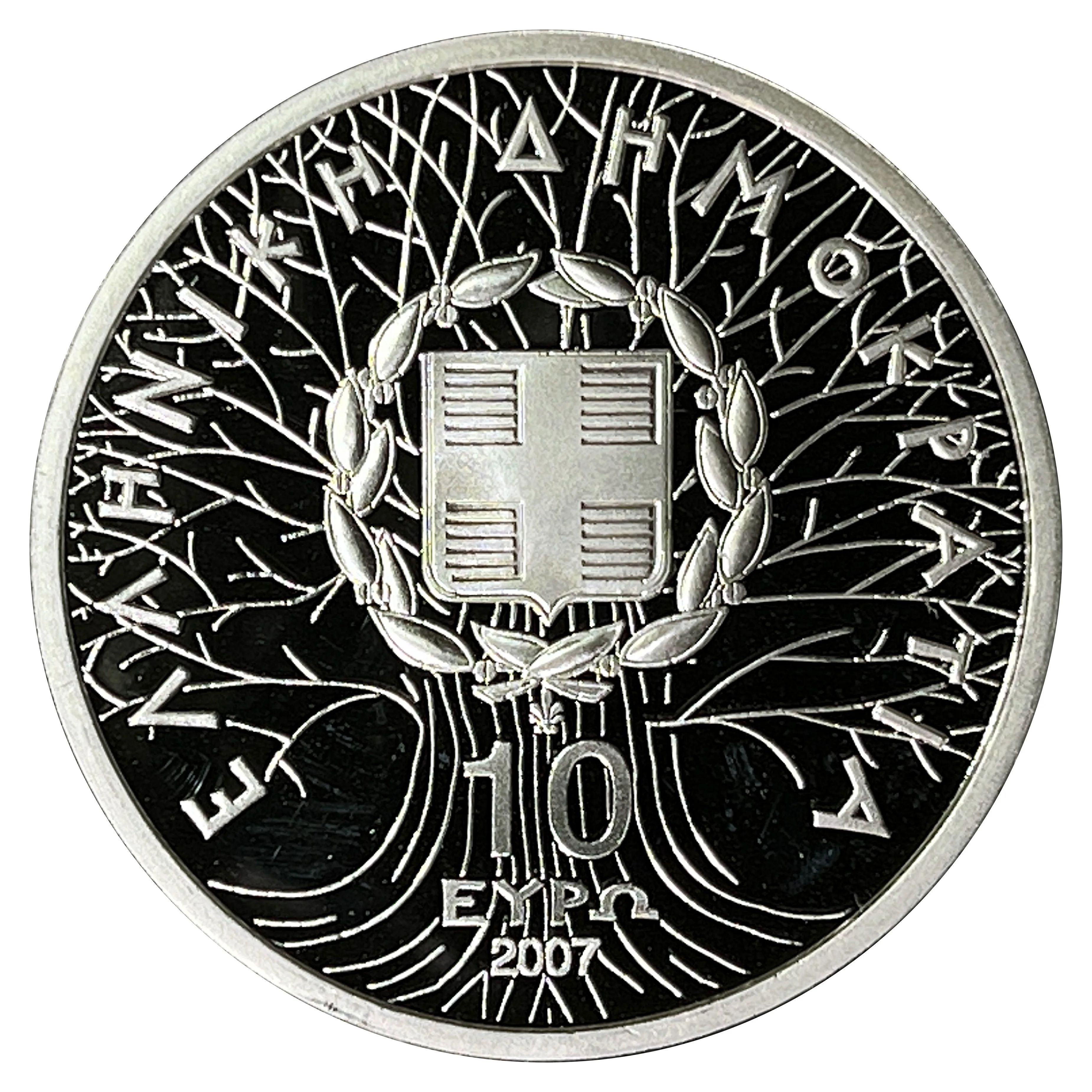 Greece's national emblem within a stylized tree.