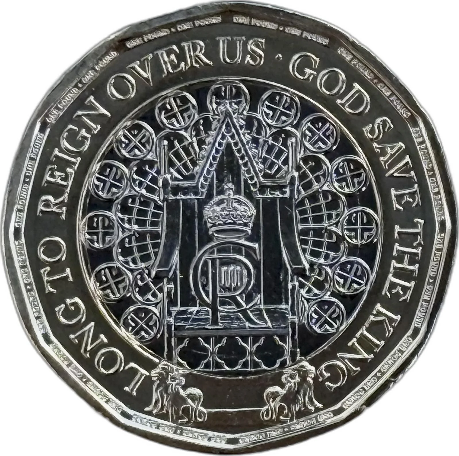 King Charles III left, uncrowned. Legend, denomination, and date around.