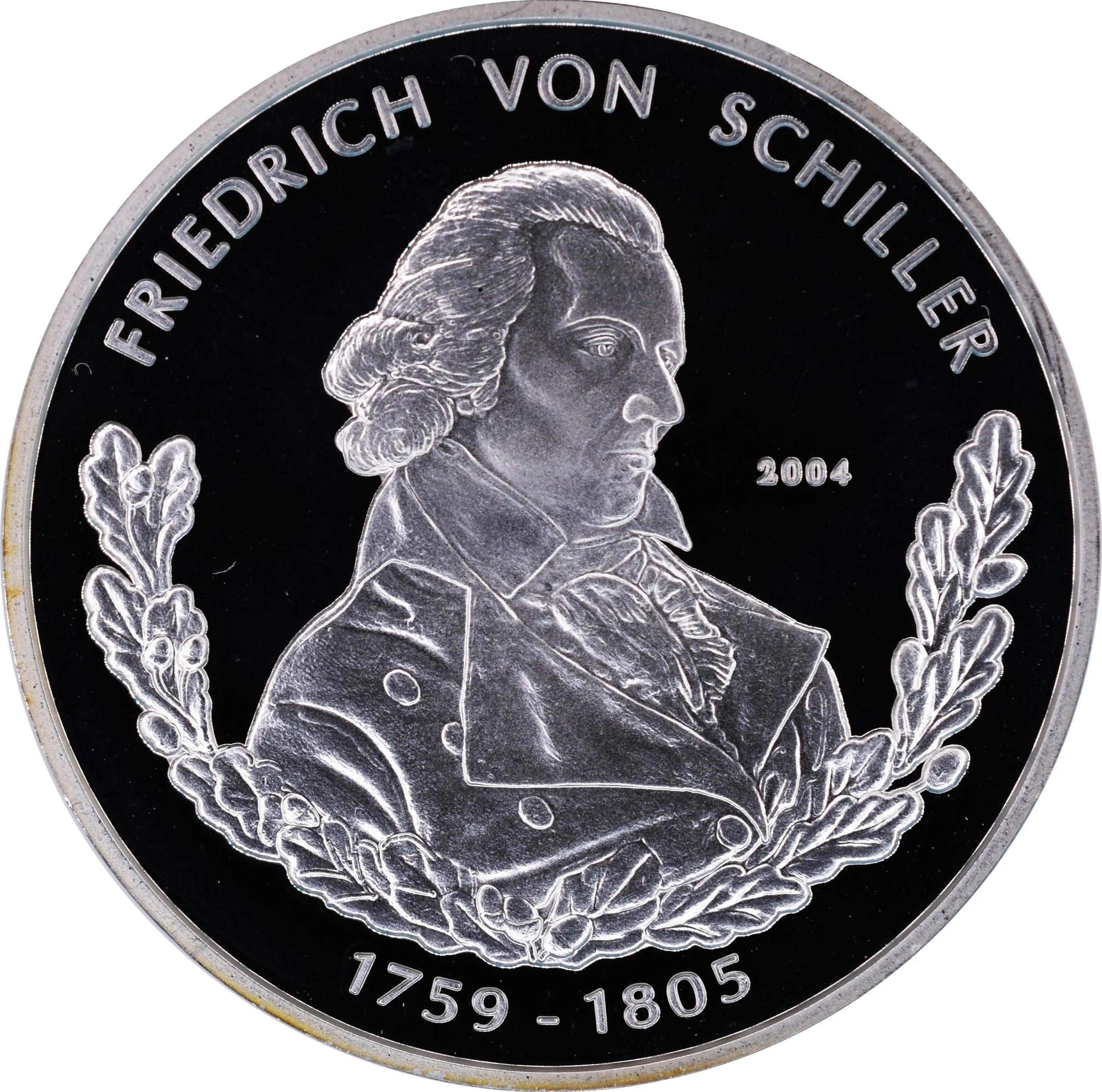 Friedrich von Schiller in right profile. Oak wreath beneath.