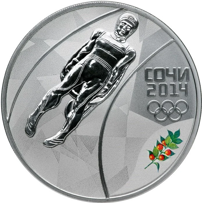 Sochi 2014 luger with Ruscus colchicus branch and Olympic rings.