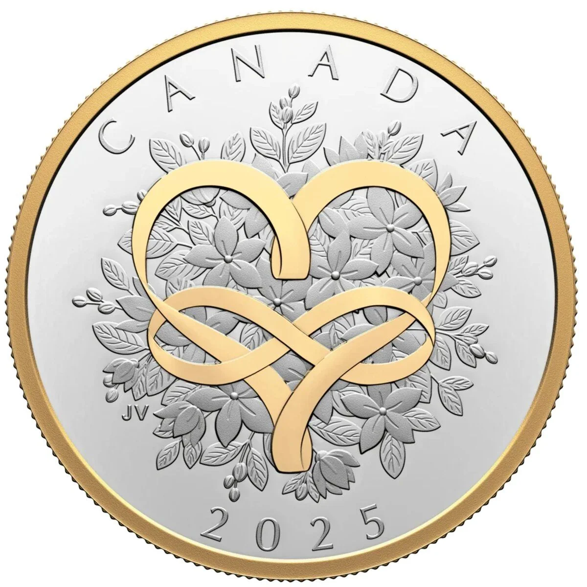 This reverse expresses love beyond romance. A jasmine bouquet, symbolizing beauty, affection, and purity, is woven with a gold-plated ribbon into an infinity heart, representing an unending bond.