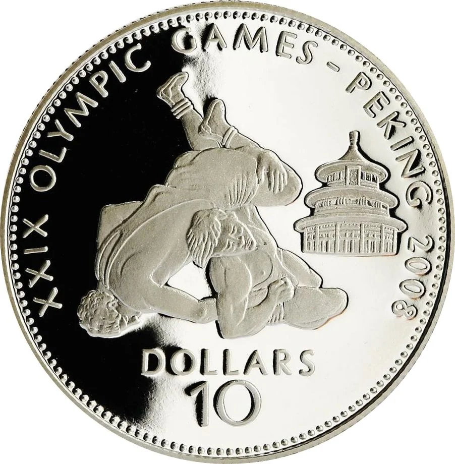 Two wrestlers with Beijing's Temple of Heaven behind them.