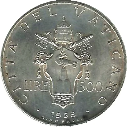 numismatic and commemorative in nature, intended for collectors and ceremonial purposes rather than for everyday commerce. Struck in precious metals like silver and gold, their face value was far below their intrinsic metal value, making them unsuitable for circulation. These coins bore the image of the reigning pope, and with the death of Pope Pius XII in October 1958 and the subsequent conclave, a practical monetary consideration arose: the need to produce new coinage featuring the image of his successor, which would be Pope John XXIII.