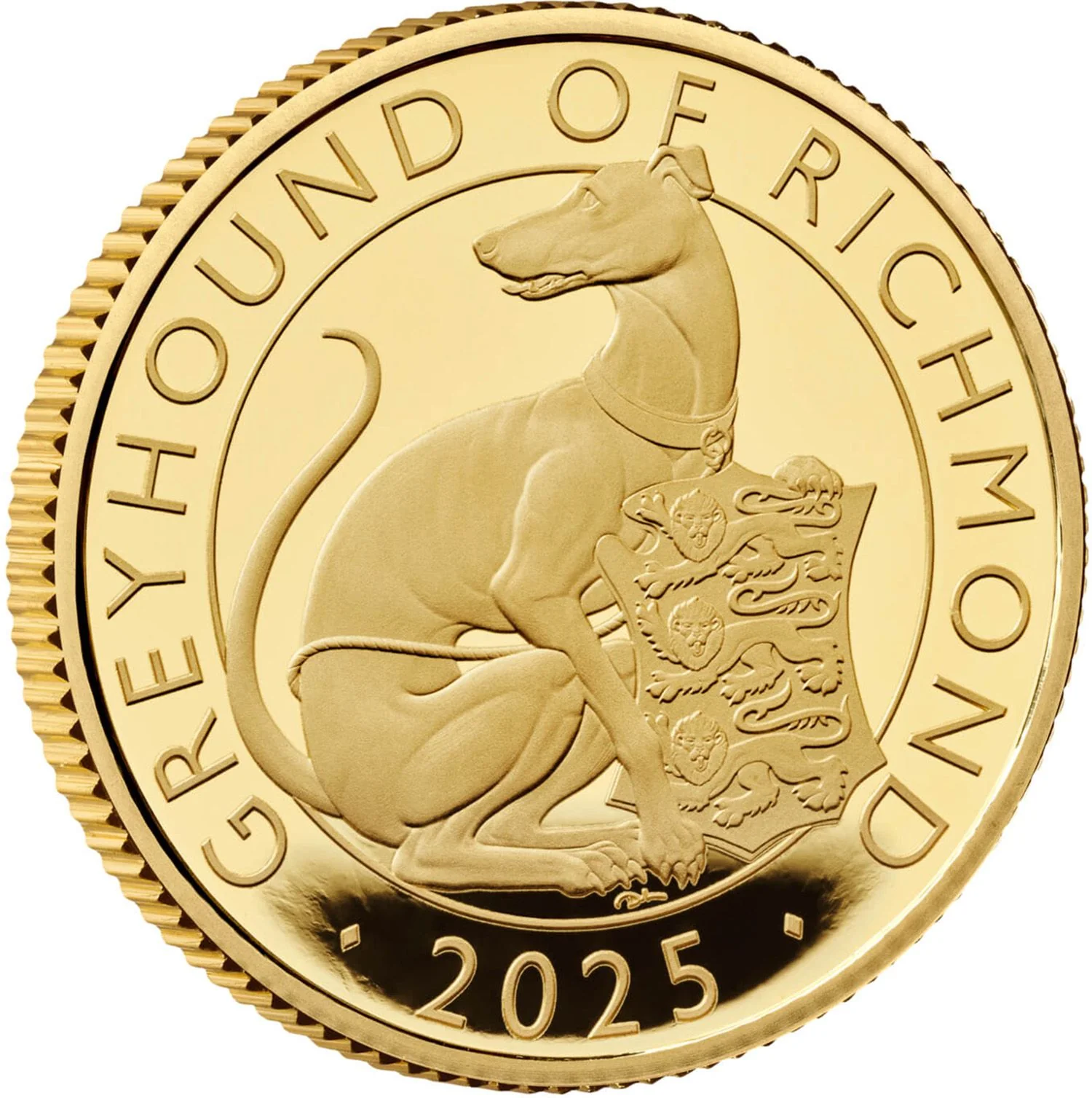 The Richmond Greyhound with a shield of three lions passant guardant from the Royal Arms, surrounded by legend, date below.