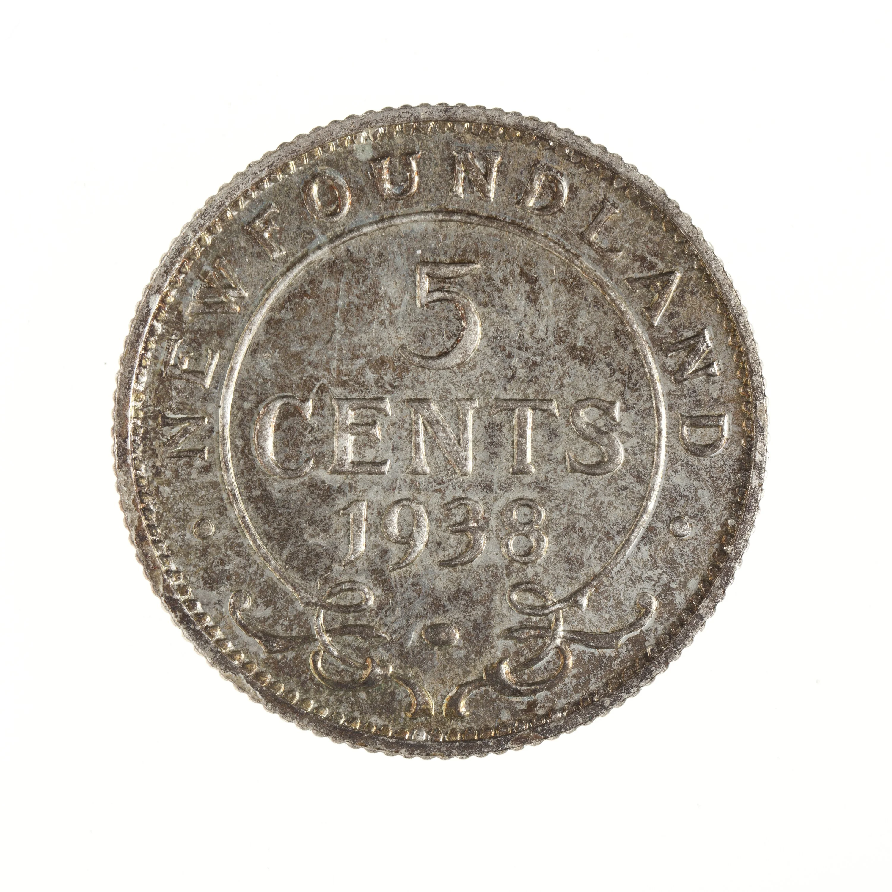 "Newfoundland" arches above the value, date below. Diameter: 15.69 mm (1938 only), reduced to 15.49 mm (1940-1943).