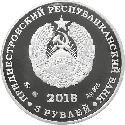 Description: Center: State Emblem of the Transnistrian Moldovan Republic.