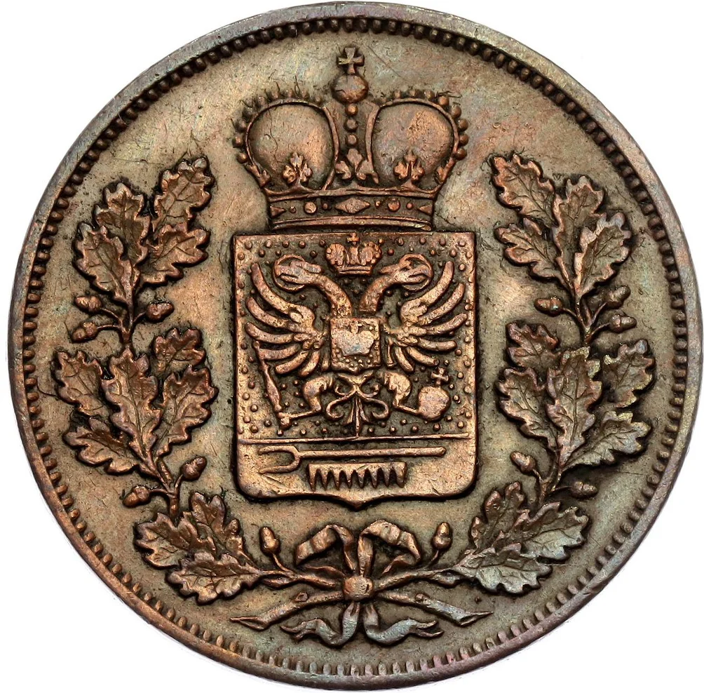 Arms crowned, encircled by oak.