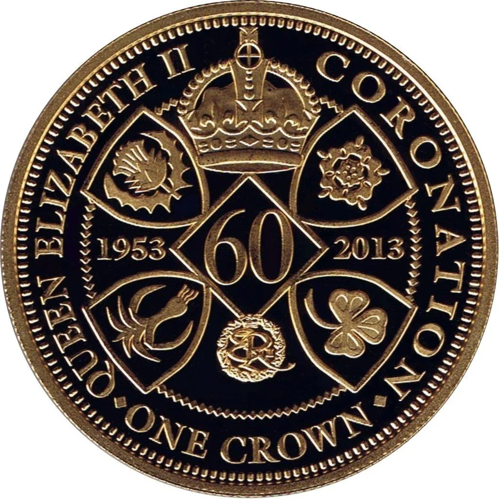 Crown above shields of thistle, rose, leek, and shamrock; "ERII" below.