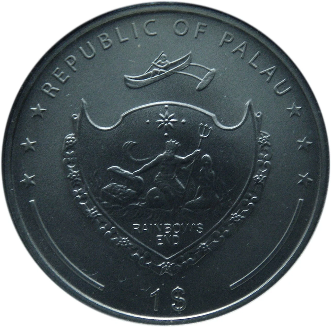 Palau coat of arms, denomination below.