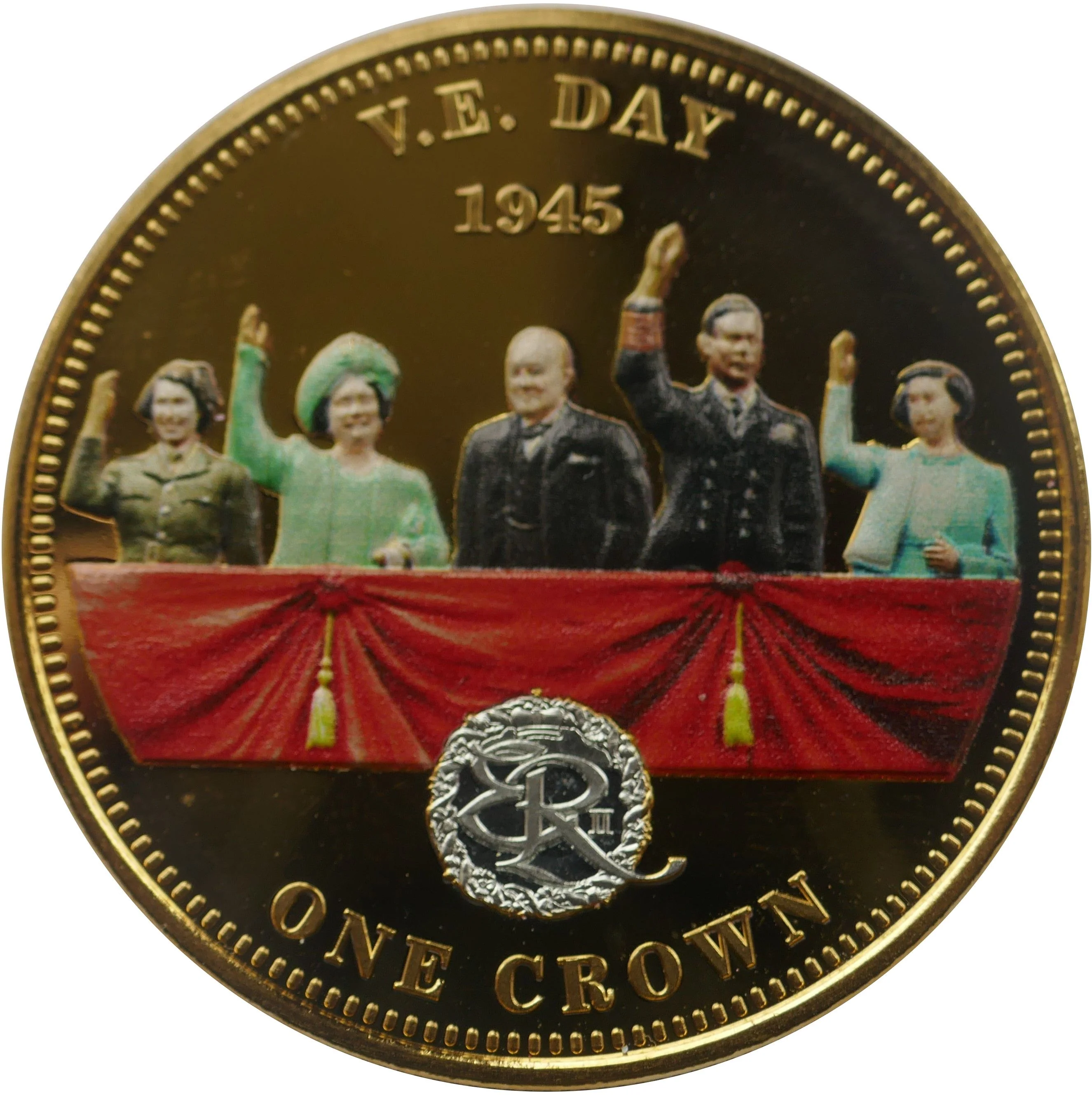V.E. Day balcony scene featuring the Royal Family and Churchill.