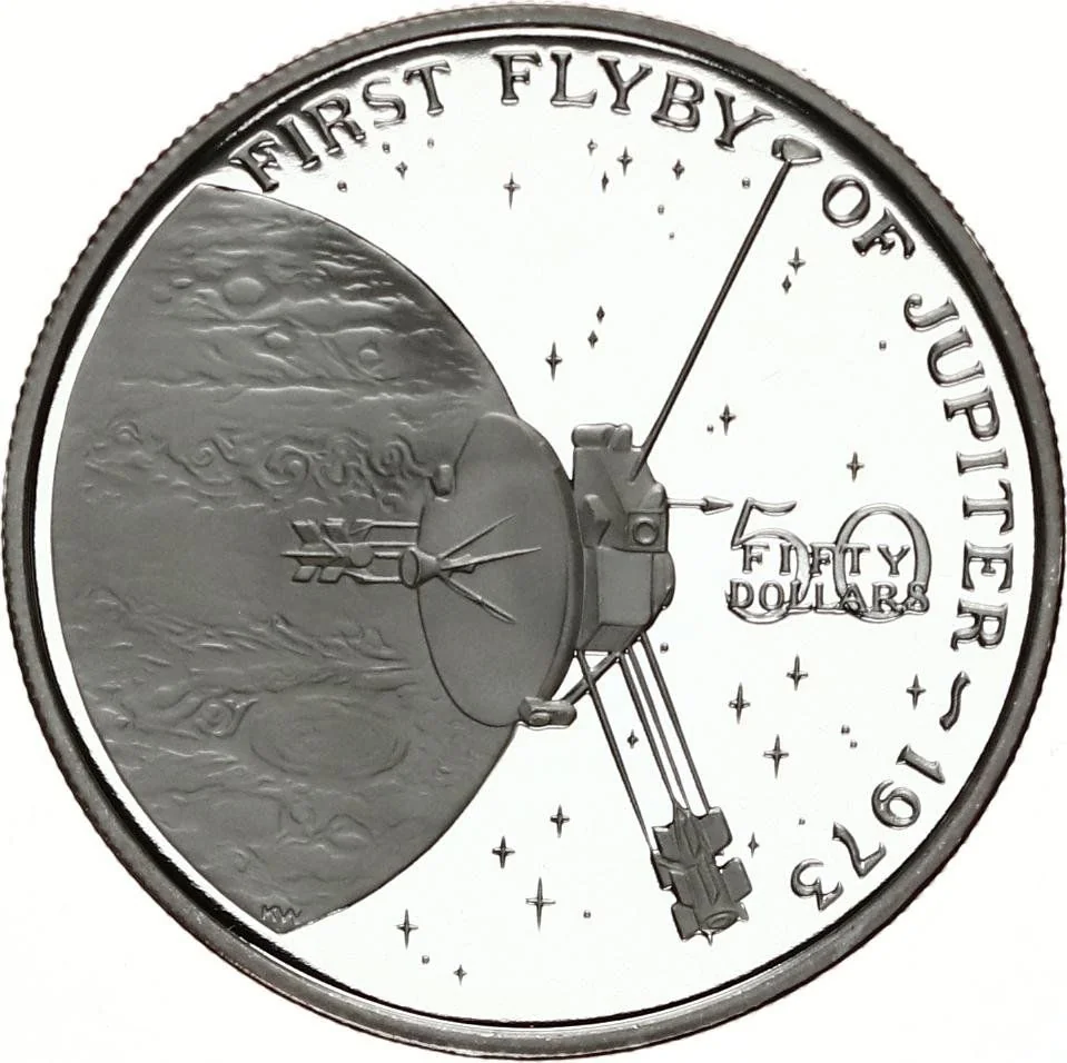 Satellite left, Jupiter right, $50 center.