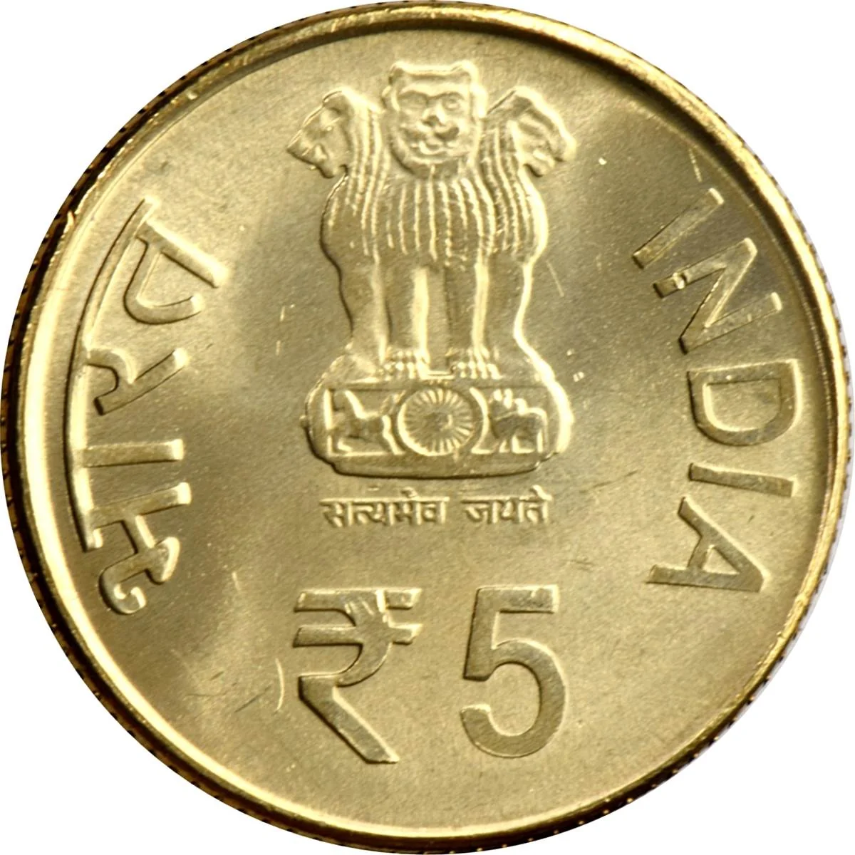 Asoka Lion pedestal with denomination beside rupee symbol.