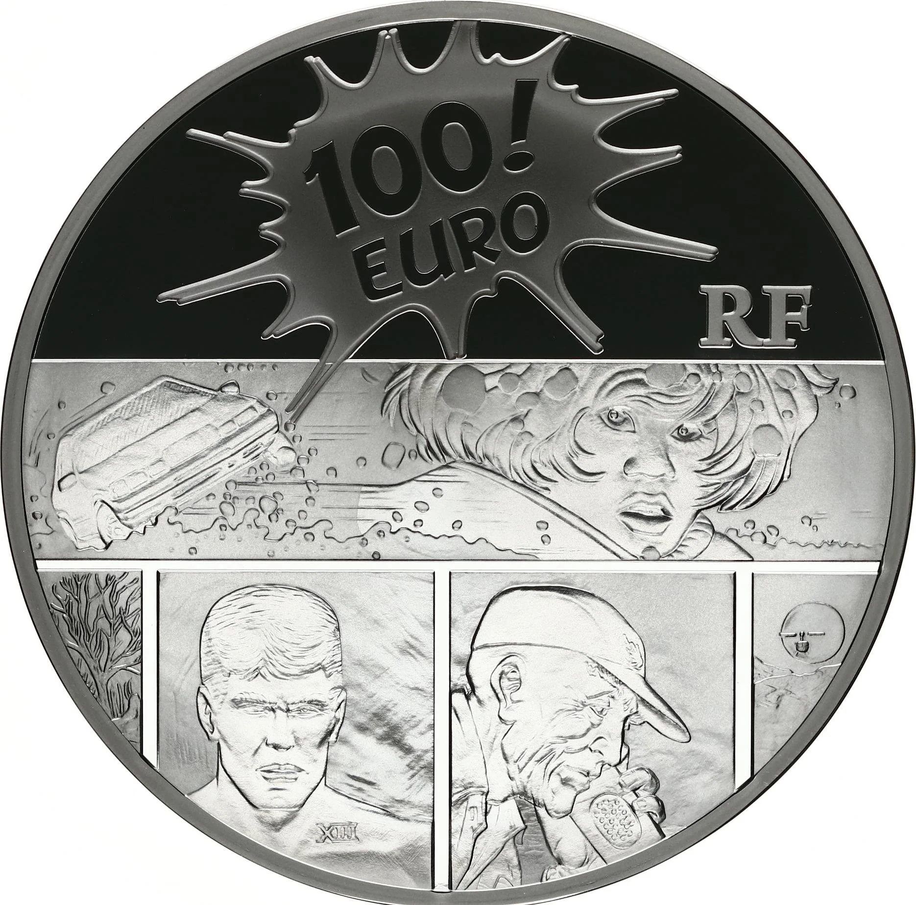 XIII's hero, face beside the numeral. Below, vintage style.