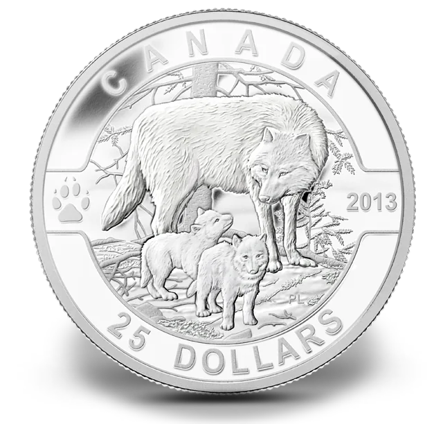 Wolf and pups with date, value beneath.