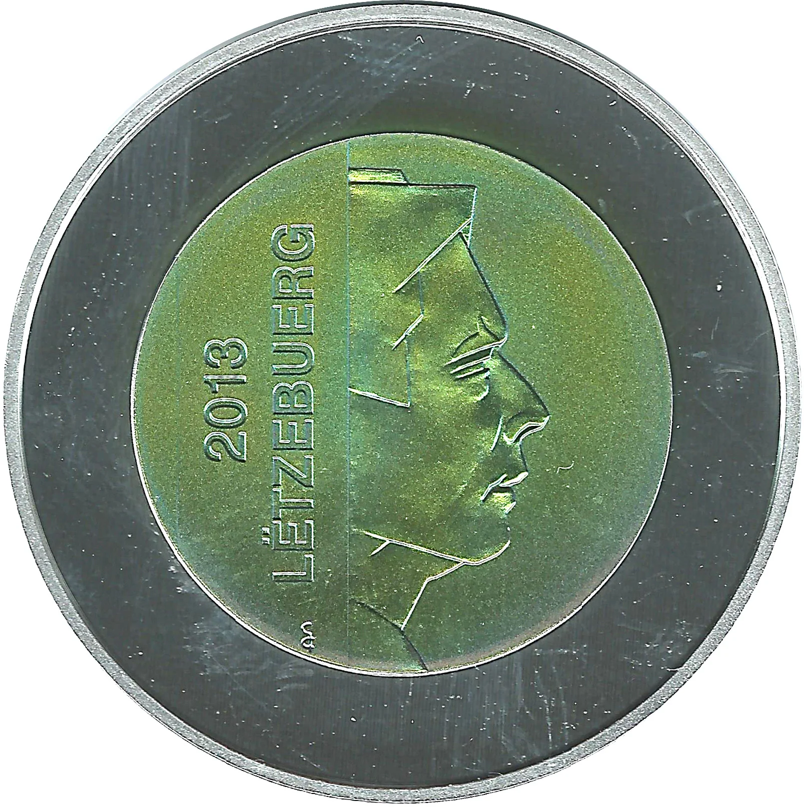 A geometric portrait of Grand Duke Henri is on the right, with "LËTZEBUERG" and the year on the left.