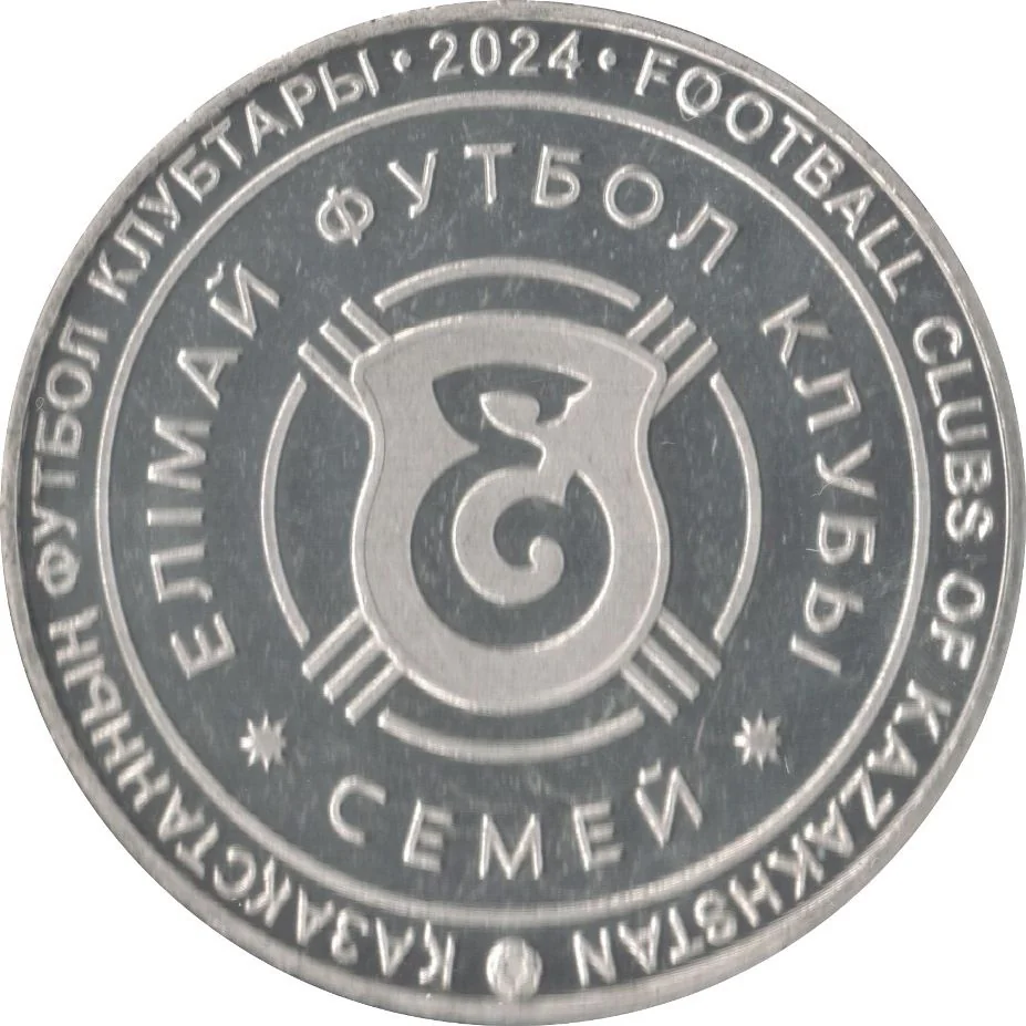Description: The Yelimai club emblem is at the coin's center, with the issue year above. Around the edge are the inscriptions "ҚАЗАҚСТАННЫҢ ФУТБОЛ КЛУБТАРЫ" (left) and "FOOTBALL CLUBS OF KAZAKHSTAN" (right).