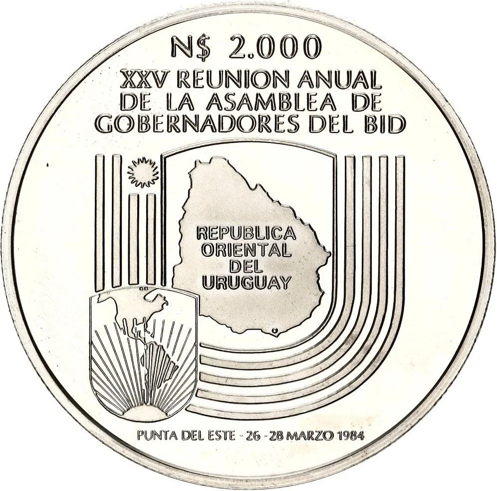 2000 Nuevos Pesos (Silver Coinage and Inter-American Development Bank Governors Meeting) – Uruguay