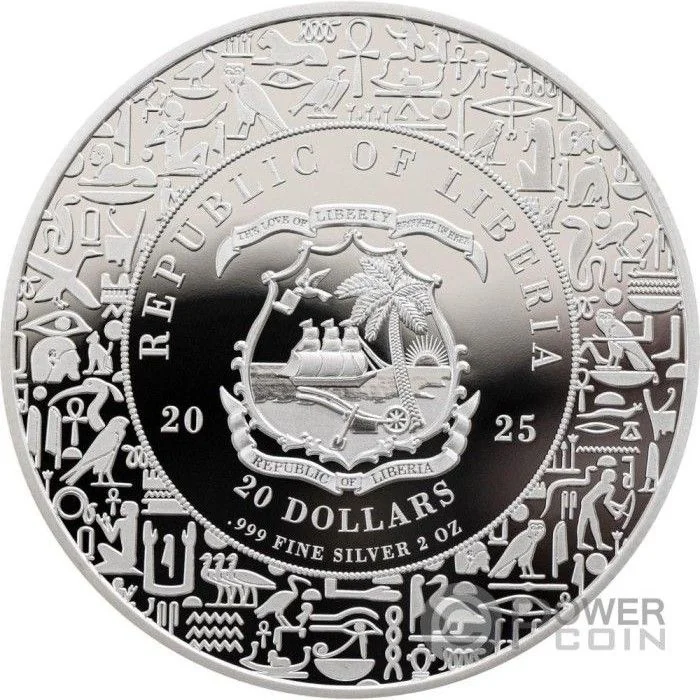 Liberian coat of arms with Egyptian symbols flanking the central date.