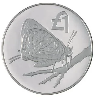 A £1 coin featuring the Cyprus Butterfly on a branch.