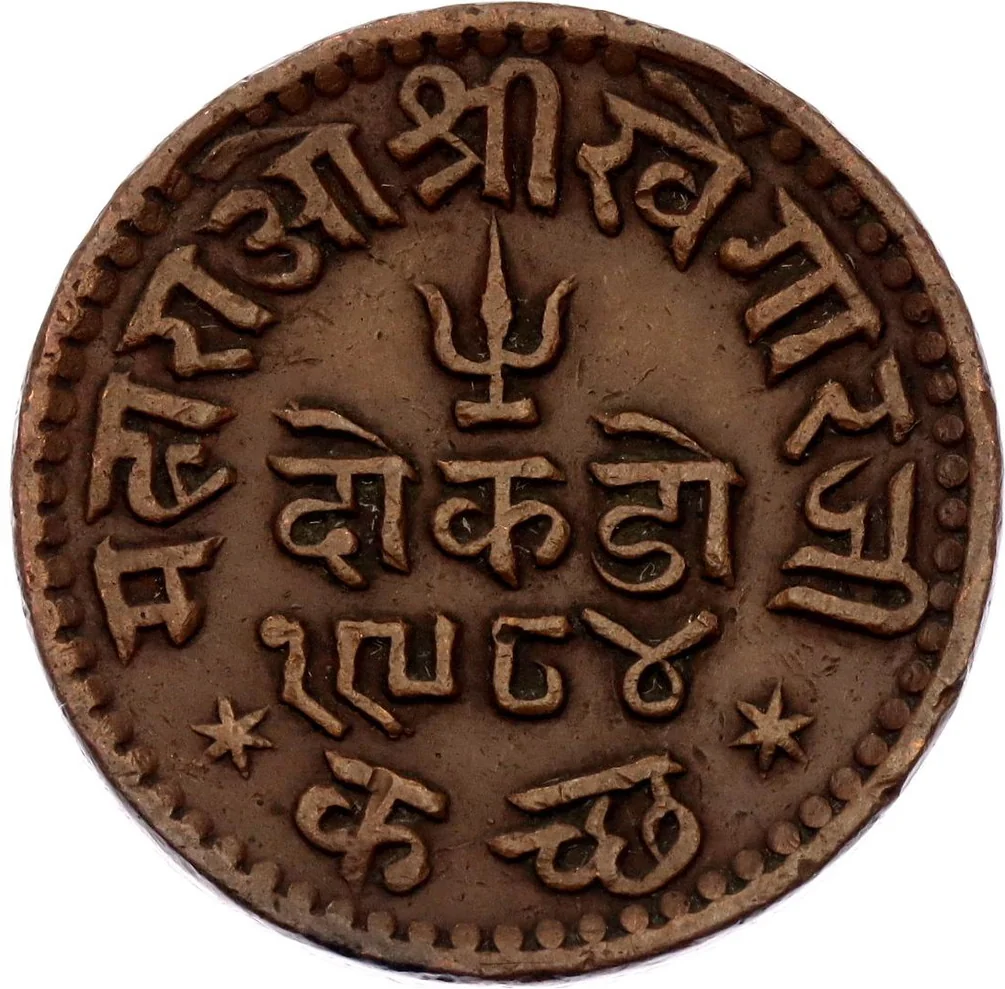 Outer margin: Devanagari legend with trident and value. Below center: VS date.