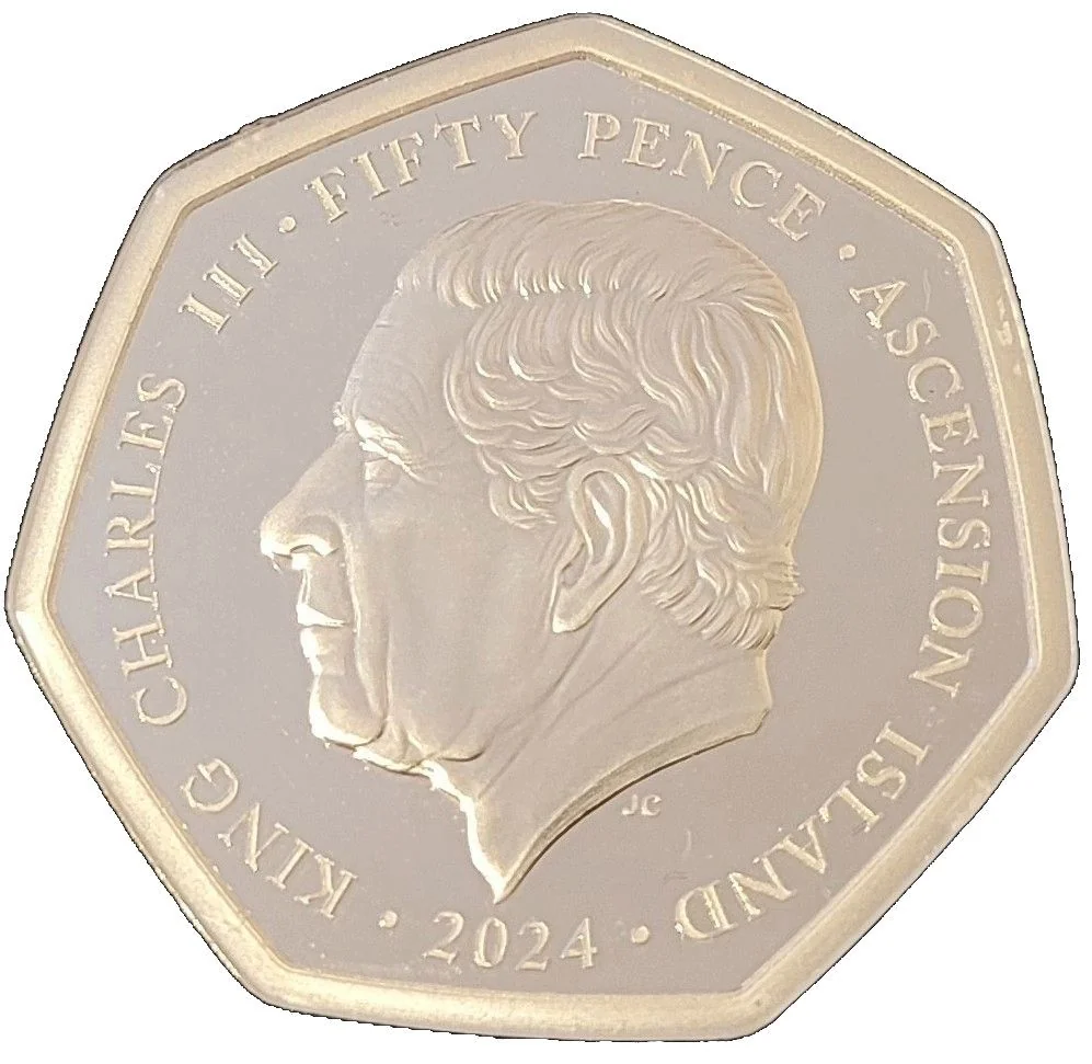 KING CHARLES III . FIFTY PENCE . ASCENSION ISLAND