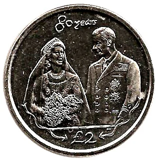Queen Elizabeth II and Prince Philip, legend above, denomination below.