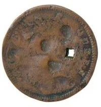 Worn, overstruck on a partially visible Queen Victoria portrait.