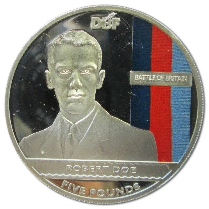 Portrait of an RAF pilot, with the DBF logo above and the pilot's name and title below.
