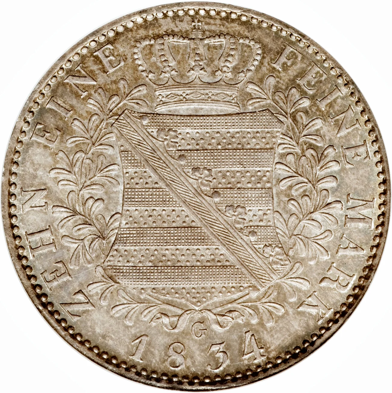 Saxonian arms in wreath, surrounded by legend, date and mint mark below.