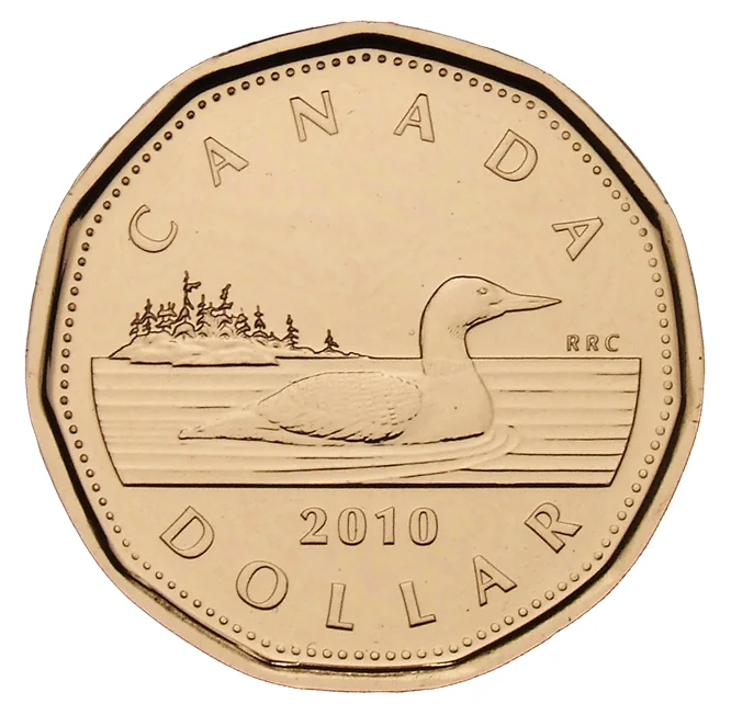 A Canadian loon on a lake, with the country above, date below, and value at the bottom.