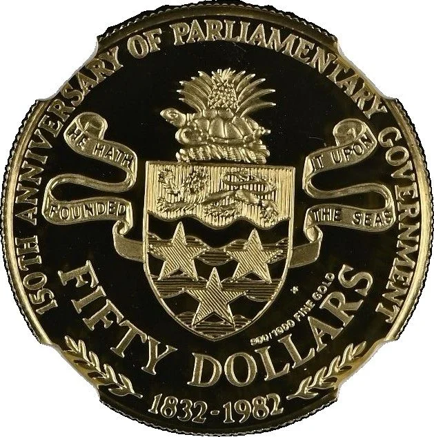 Crest above, event top, mintmark/fineness/metal right, face value below, dates bottom.