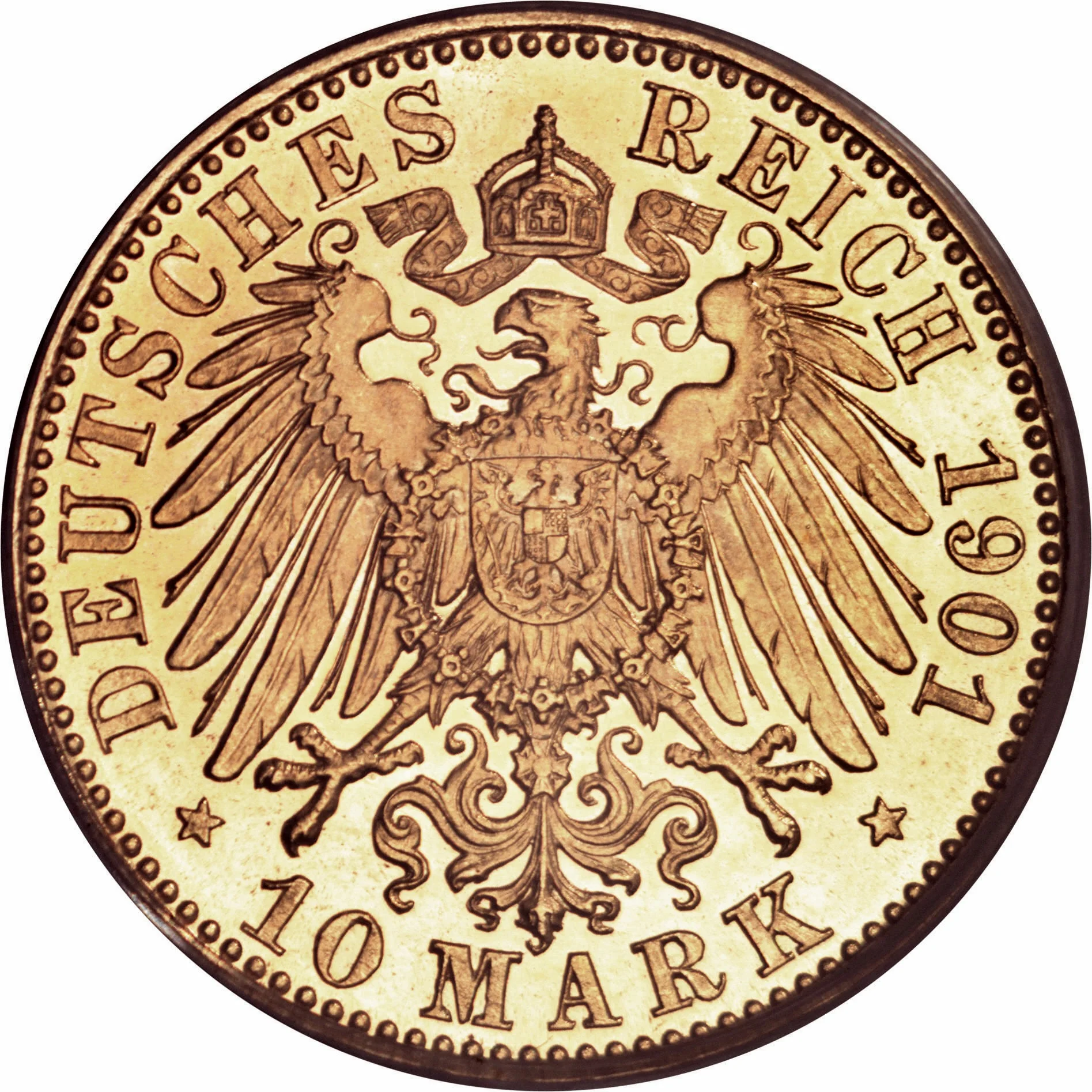 Imperial German eagle with crown, inscriptions for date above and denomination below.